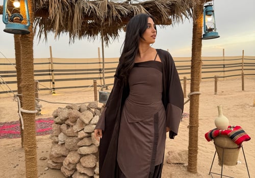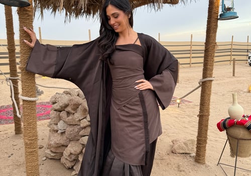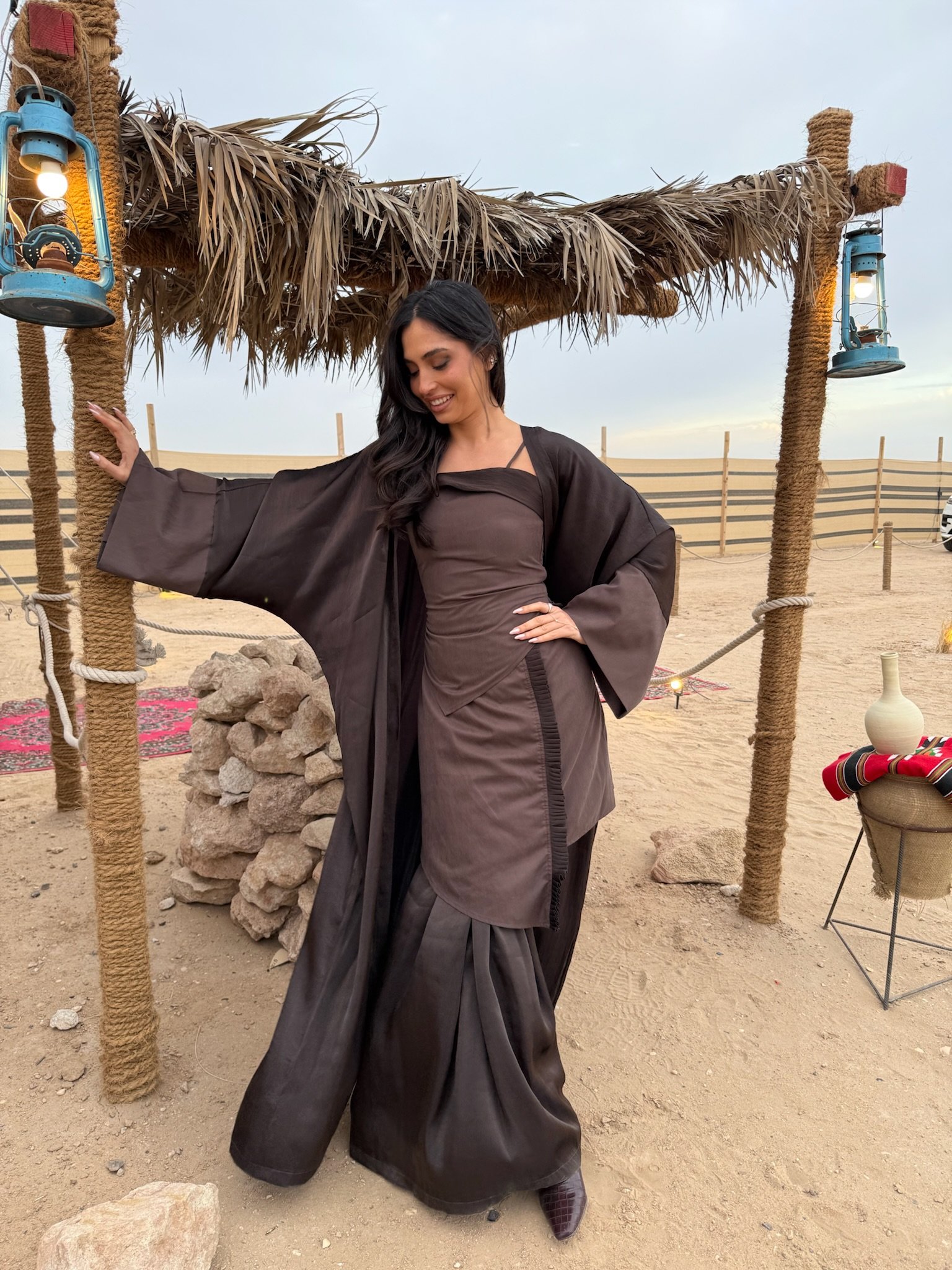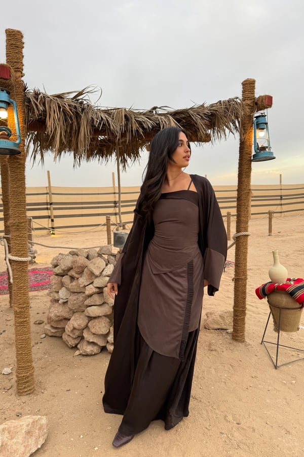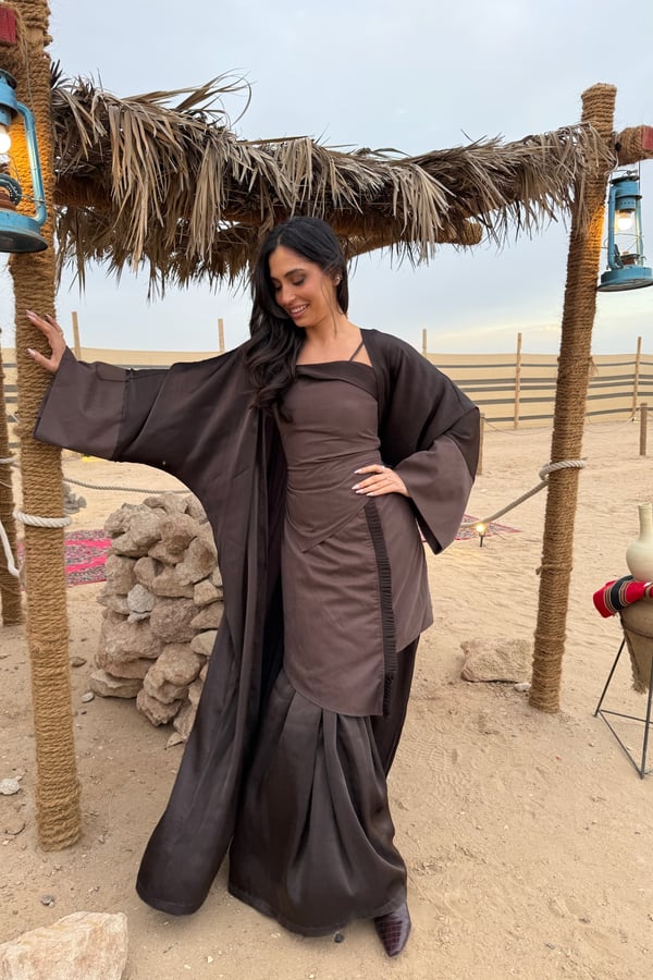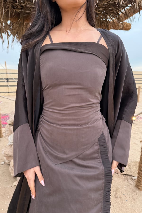 3 pieces brown kaftan : top, skirt and bisht
